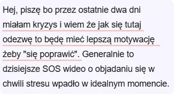 Kurs dał mi ogromne WSPARCIE. Dzięki kursowi zaczęłam dostrzegać swoje emocje, akceptować je i daję im ujście w inny sposób niż jedzenie.