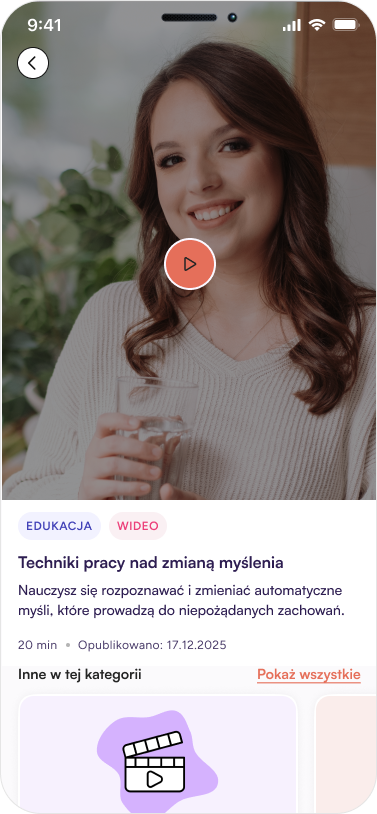 - Psychodietetyczna ścieżka rozwoju - ćwiczenia i wideo, które prowadzą Cię przez proces zmiany