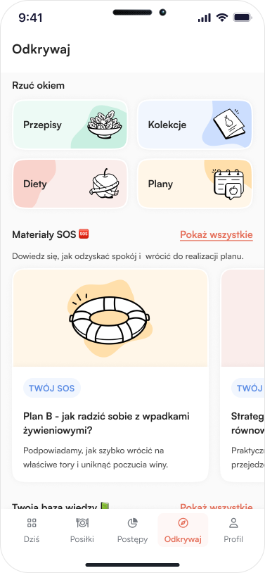 Dzięki elastycznym funkcjom możesz wybierać posiłki, planować dni, budować nowe umiejętności oraz swój system odżywiania bez restrykcji i nakazów.