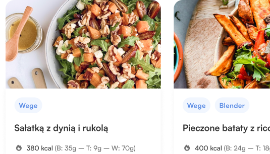 Kolekcje i baza szybkich przepisówBaza +7000 przepisów i tematyczne kolekcje smacznych, zdrowych i prostych posiłków na każdą okazję. Możesz je filtrować np. po składnikach lub czasie przygotowania i elastycznie dopasować do siebie.
